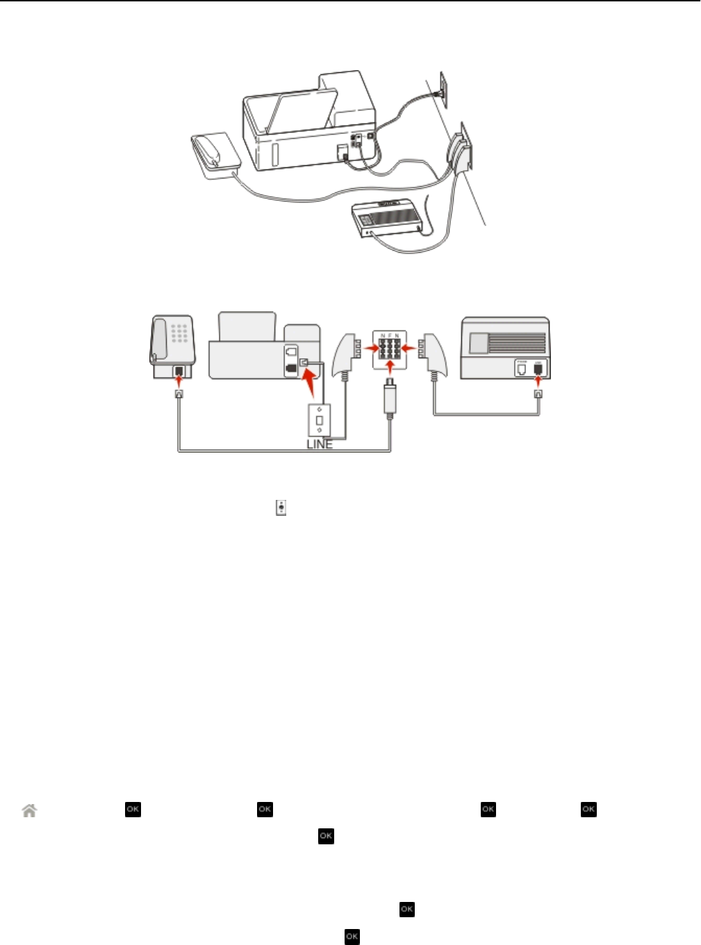3 Jos haluat kytkeä samaan seinäpistorasiaan puhelimen ja vastaajan, kytke laitteet oheisen kuvan mukaisesti.
