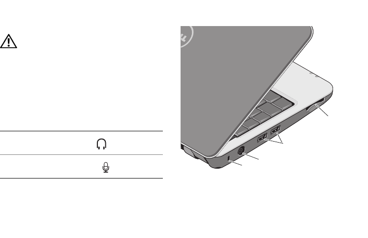- 1 Connect the AC adapter to the AC adapter connector on the computer and to the electrical outlet.