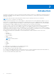Notes, cautions, and warnings NOTE: A NOTE indicates important information that helps you make better use of your product. CAUTION: A CAUTION indicates either potential damage to hardware or loss of data and tells you how to avoid the problem. WARNING: A WARNING indicates a potential for property damage, personal injury, or death. © 2018 - 2021 Dell Inc. or its subsidiaries. All rights reserved. Dell, EMC, and other trademarks are trademarks of Dell Inc. or its subsidiaries.