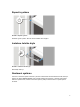Instalace a konfigurace VAROVÁNÍ: Před provedením následujícího postupu si prostudujte bezpečnostní pokyny dodané se systémem. Rozbalení stojanového systému Rozbalte systém a zkontrolujte jeho jednotlivé součásti. Sestavte kolejničky a nainstalujte systém do stojanu podle bezpečnostních pokynů a pokynů k instalaci do stojanu dodaných se systémem. Obrázek 1. Instalace kolejniček a systému do stojanu Připojení volitelné klávesnice, myši a monitoru Obrázek 2.