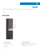 2 Chassis This chapter illustrates the multiple chassis views along with the ports and connectors and also explains the FN hot key combinations. Topics: • Front view • Back view Front view 1 Optical drive (optional) 2 Power button and power light 3 Hard-drive activity light 4 Memory card reader (optional) 5 Headset/Universal audio jack port 6 USB 2.0 port with PowerShare (supports battery charge capability) 7 USB 2.0 port 8 USB 3.1 Gen 2 Type-C port with PowerShare 9 USB 3.