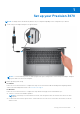 1 Set up your Precision 3470 NOTE: The images in this document may differ from your computer depending on the configuration you ordered. 1. Connect the power adapter and press the power button. NOTE: To conserve battery power, the battery might enter power saving mode. Connect the power adapter and press the power button to turn on the computer. 2. Finish operating system setup. For Ubuntu: Follow the on-screen instructions to complete the setup.