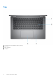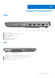 2 Views of Precision 3470 Right 1. 2. 3. 4. 5. 6. 7. microSD-card slot Headset (headphone and microphone combo) port USB 3.2 Gen 1 port USB 3.2 Gen 1 port with PowerShare HDMI 2.0 port RJ45 Ethernet port (flip-down) Wedge-shaped lock slot Left 1. 2. 3. 4.