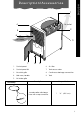 ENGLISH De s c r i p t i o n / A c c e s s o r i e s 1 Air outlet 4 2 5 6 Air intake 3 7 8 9 1. Control panel 6. Air filter 2. Control panel lid 7. Tank access door 3. Air outlet grille 8. Continuous drainage connection 4. Side carry handle 9. Tank 5. Air intake grille Accessory Description condensation discharge hose with snap connector No.