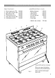 Features and technical data Gas burners 1. 2. 3. 4. 5. 6. Multifunction oven Triple-ring burner (TC) Semi-rapid burner (SR) Rapid burner (R) Auxiliary burner (A) Semi-rapid burner (SR) Auxiliary burner (A) 3,50 kW 1,75 kW 3,00 kW 1,00 kW 1,75 kW 1,00 kW – Bottom element – Top element – Grill element – Circular element – Fan motor – Oven lamp 1725 W 1725 W 2500 W 2500 W 25 W 15 W – Usable oven volume 100 dm3 4 5 3 6 1 2 Identification label Fig.