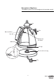 Description of Appliance The following terms are used throughout the instruction manual Lid Filter Water level indicator Steam tube Maximum water level indicator On/Off switch Pilot light 360° base with cord storage Plug 2 Kettle