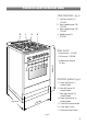 Features and technical data Gas burners 1. 2. 3. 2 1 3 4 4. (Fig. 2) Auxiliary burner (A) 1.00 kW Semi-rapid burner (SR) 1.90 kW Semi-rapid burner (SR) 1.90 kW Rapid burner (R) 3.15 kW Gas oven – Oven burner - 3.70 kW – Grill burner - 2.55 kW 11 10 5 8 6 7 9 900 mm – Usable oven volume 61 dm3 Control panel (Fig. 2) 600 mm 600 5. Front left burner (1) control knob 6. Rear left burner (2) control knob 7. Rear right burner (3) control knob 8. Front right burner (4) control knob 9.