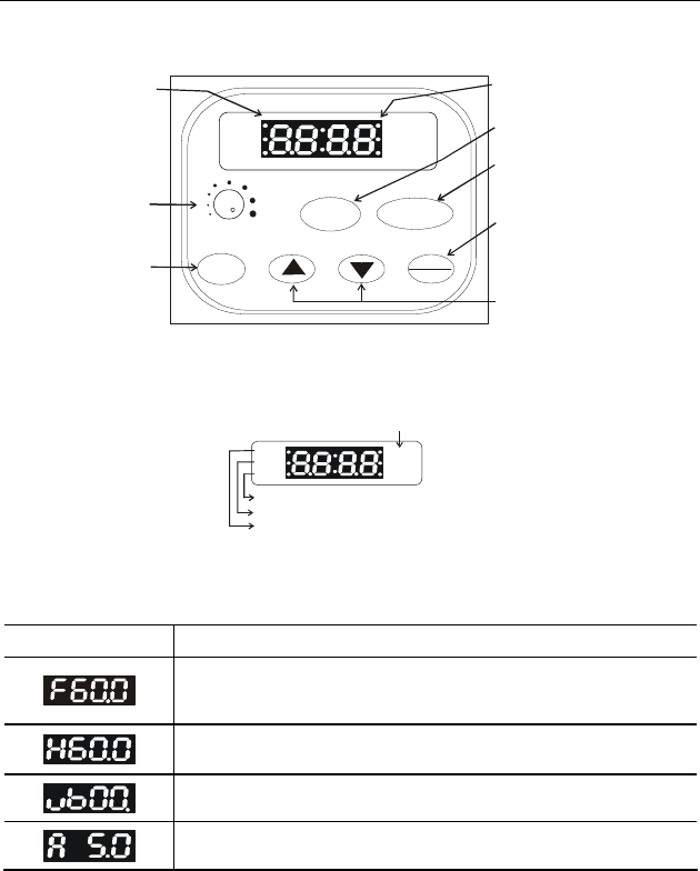 Displays the actual output frequency at terminals U/T1, V/T2, and W/T3.