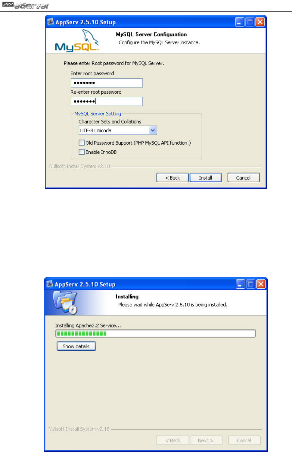 Enter root password for MySQL database and complete the settings for MySQL Server.