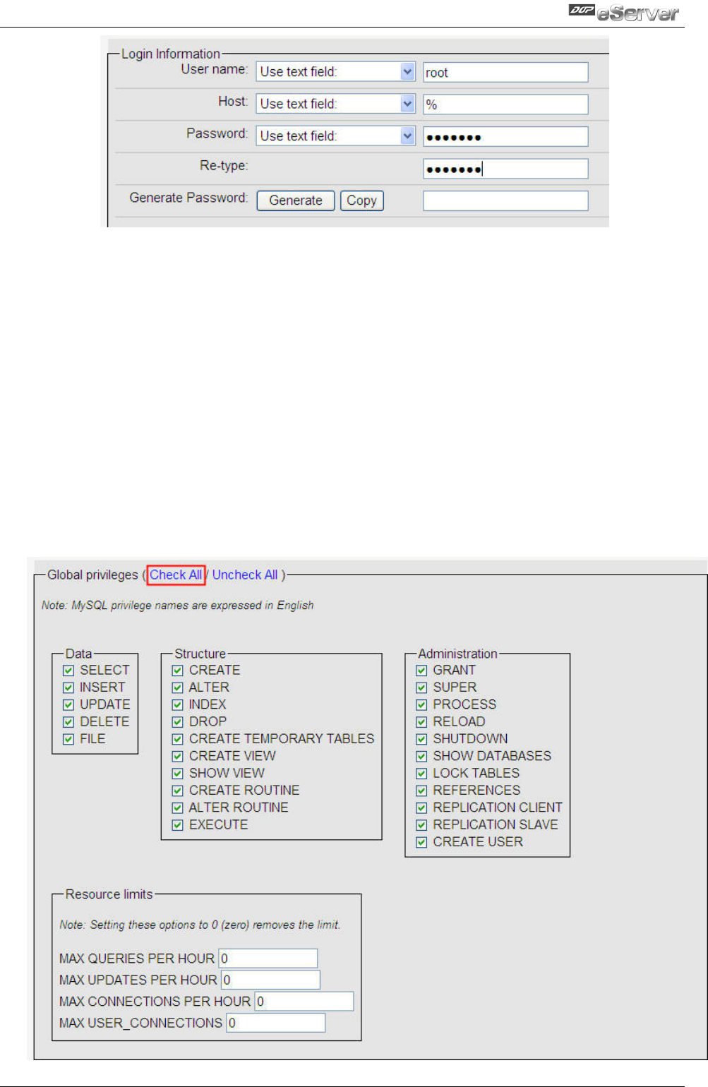 Scroll the screen down and click on Check All link to select all privileges. Then, click on