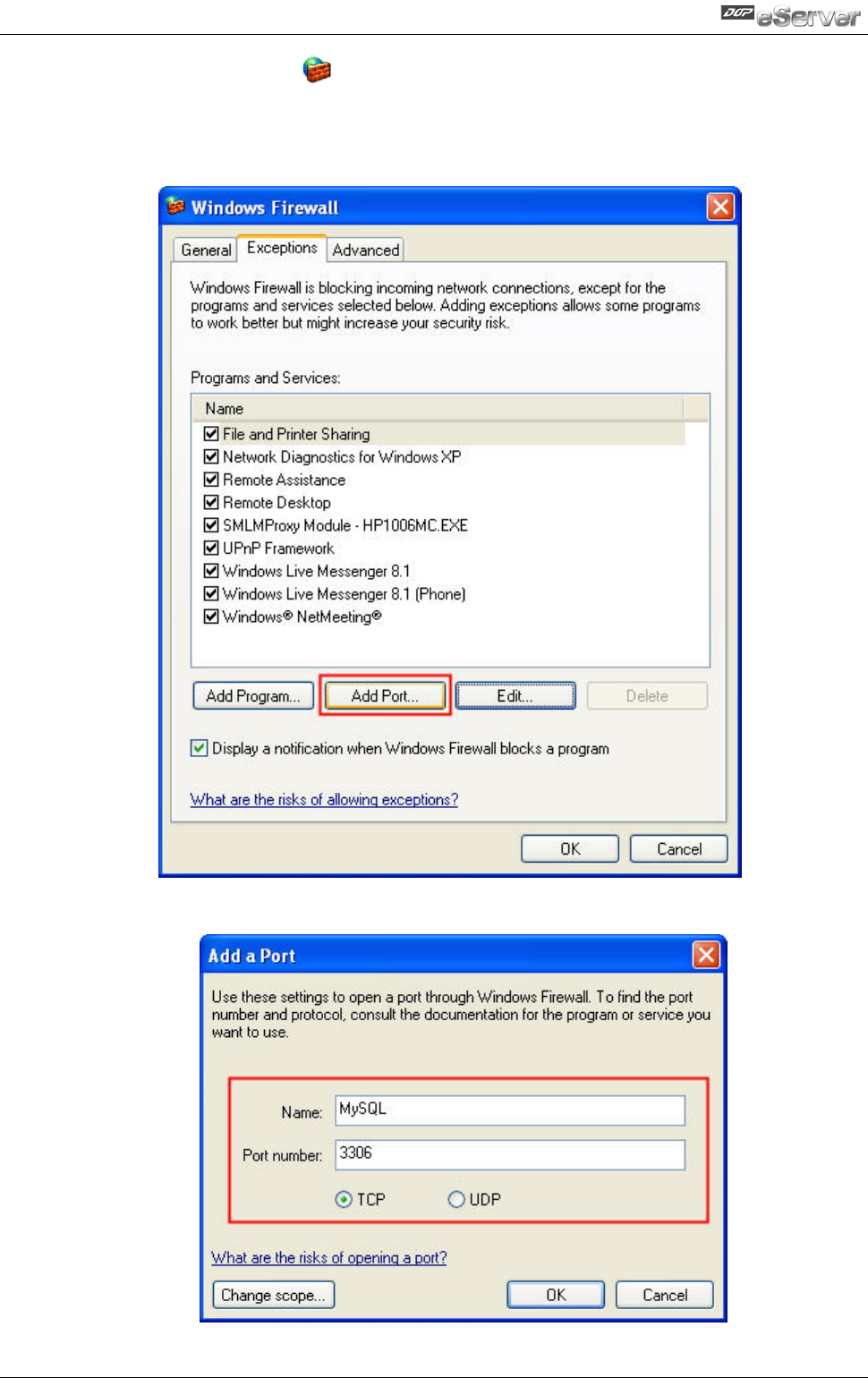 Center > Windows Firewall. Then, click on the Exceptions tab.