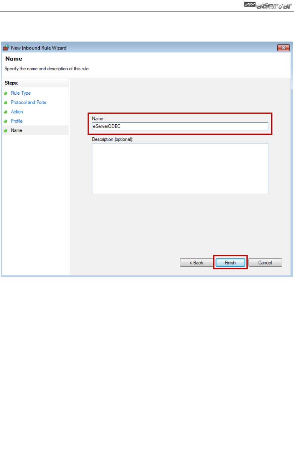 Enter the Name of this rule. eServerODBC is the entered name in this example. Users can
