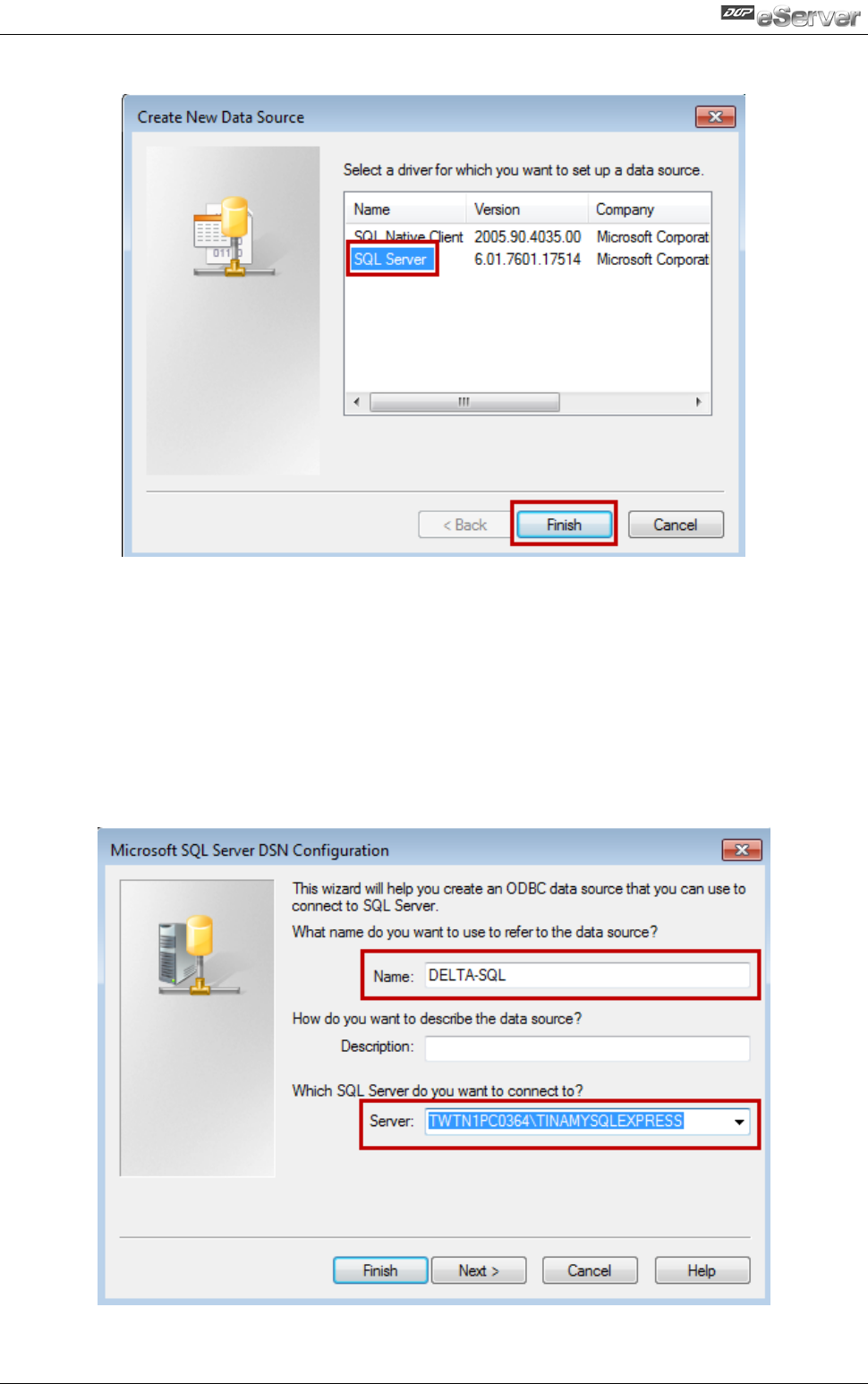 Please select SQL Server as the driver. Then, click【Finish】.
