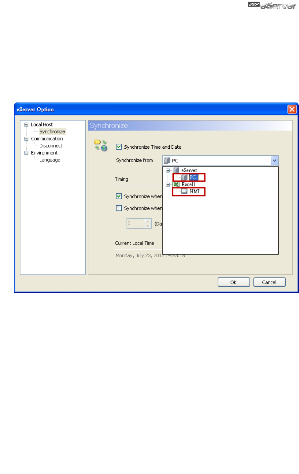 when eServer is started. If “Synchronize when the following cycle reaching” is selected and