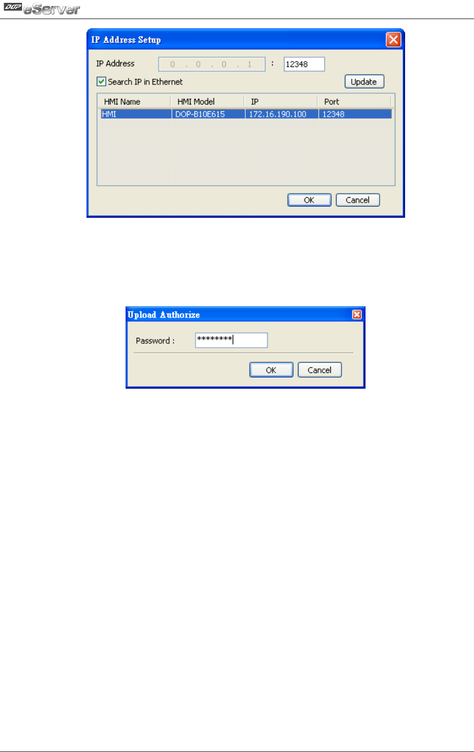 eServer will ask user to input the authorize password to connected with HMI. (The