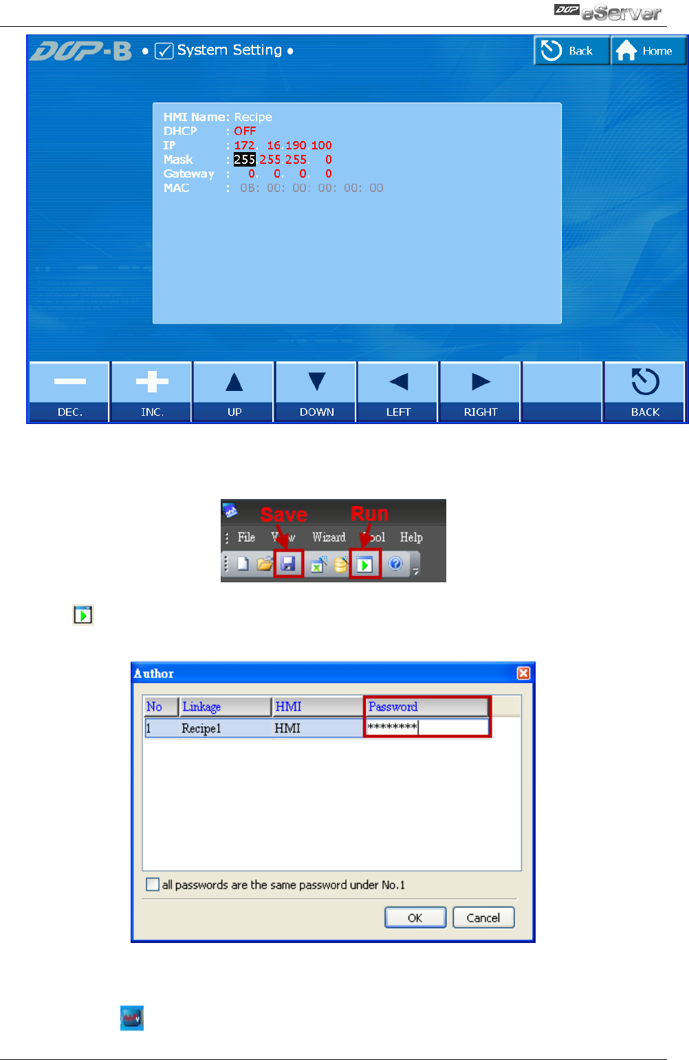 After networking settings are set correctly and successfully, return to eServer, save the