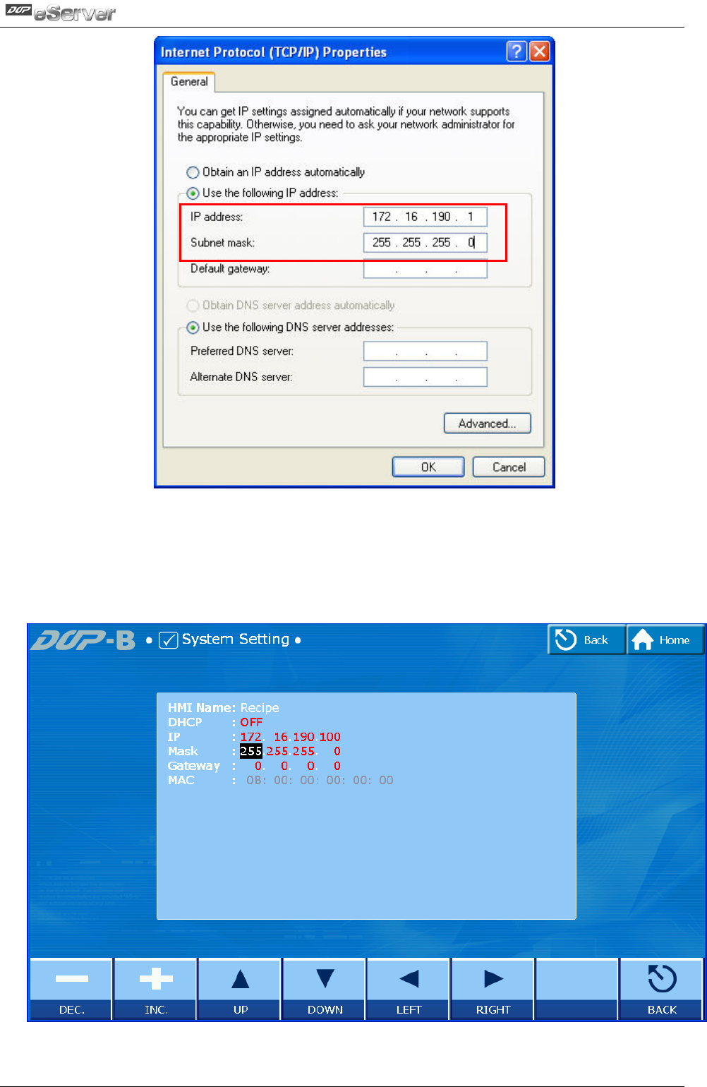 Enter into the system menu and set IP address to 172.16.190.100. Please see the figure