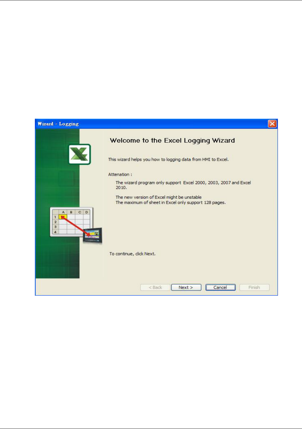 Then, the Excel Logging Wizard will be activated and the following dialog box will