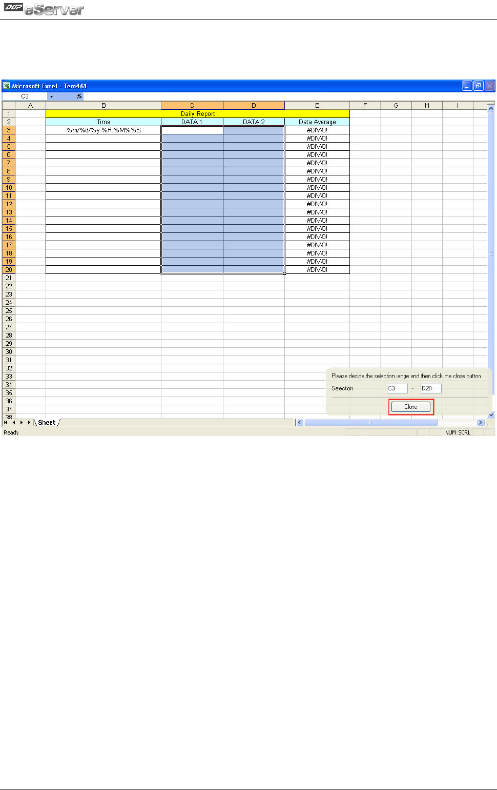 range is selected, press Close button to finish.