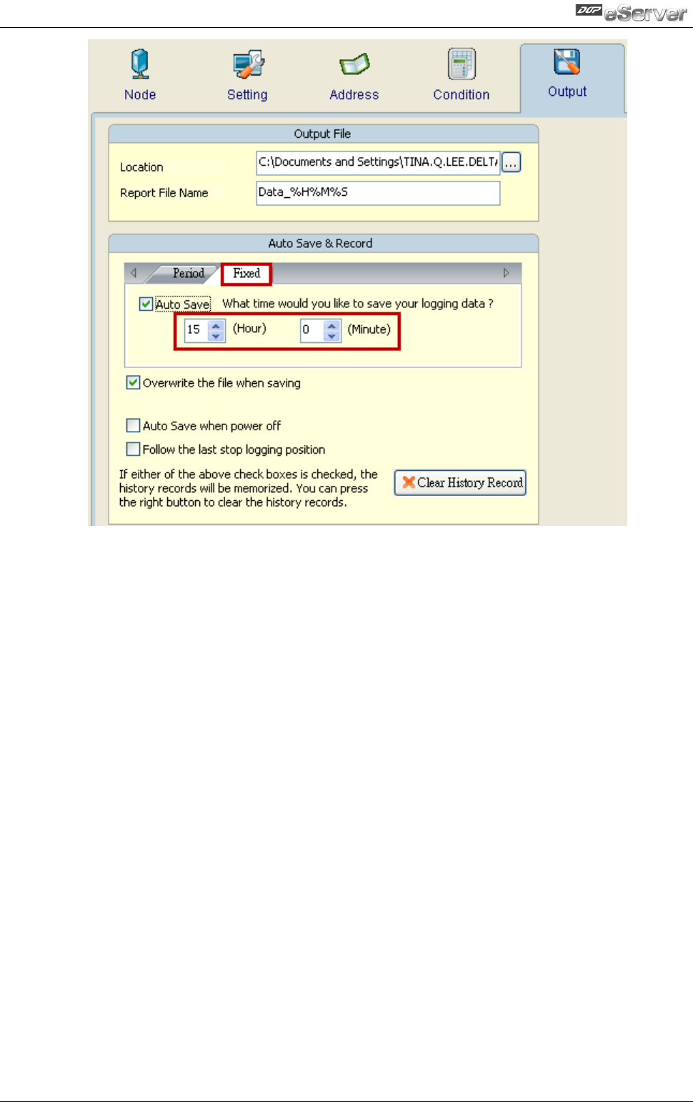 Set one minute to auto save file, scan time is five minutes, data range is 20,