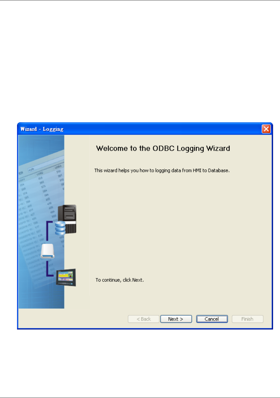 Then, the ODBC Logging Wizard will be activated and the following dialog box will
