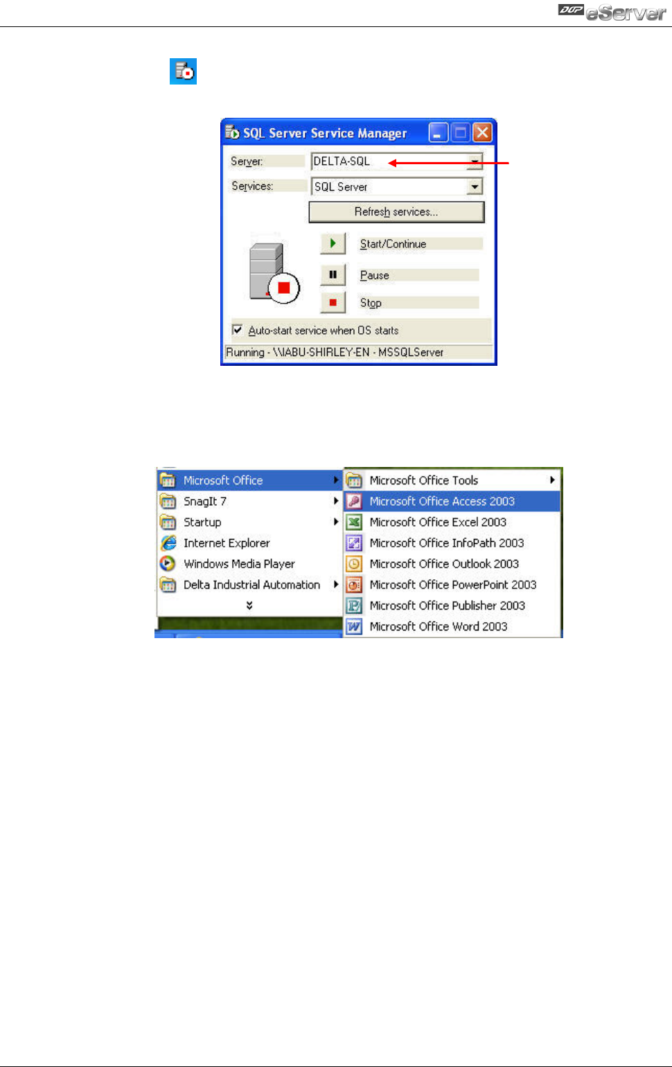 following SQL Server Service Manager dialog box and click Start/Continue button.