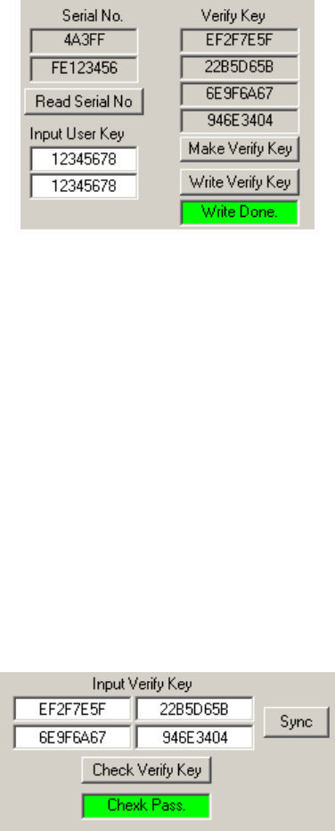 Make Verify Key item: Encrypt the SerialNo and customer provided Userkey to