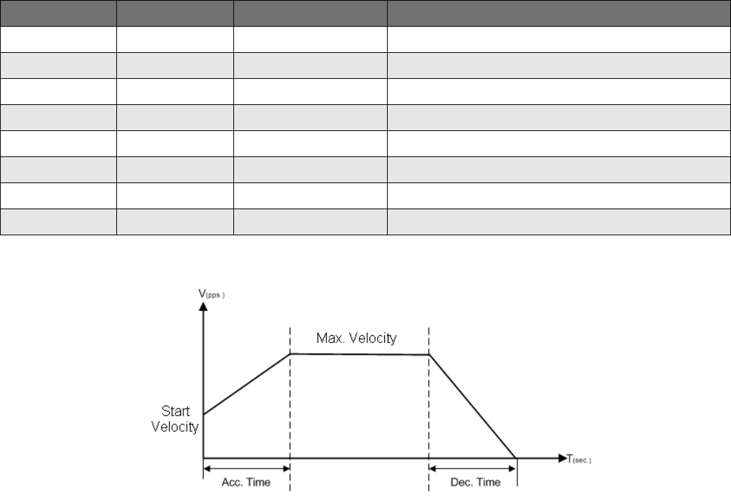 I32 StrVel, I32 MaxVel, F64 Tacc, F64 Tdec)