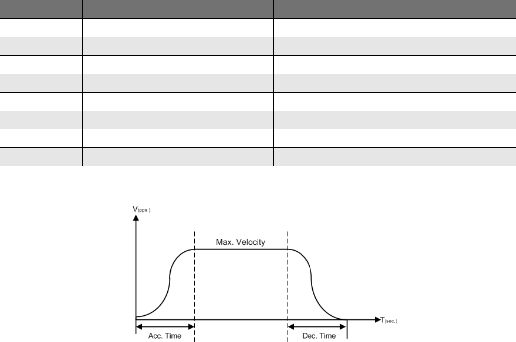 I32 StrVel, I32 MaxVel, F64 Tacc, F64 Tdec)