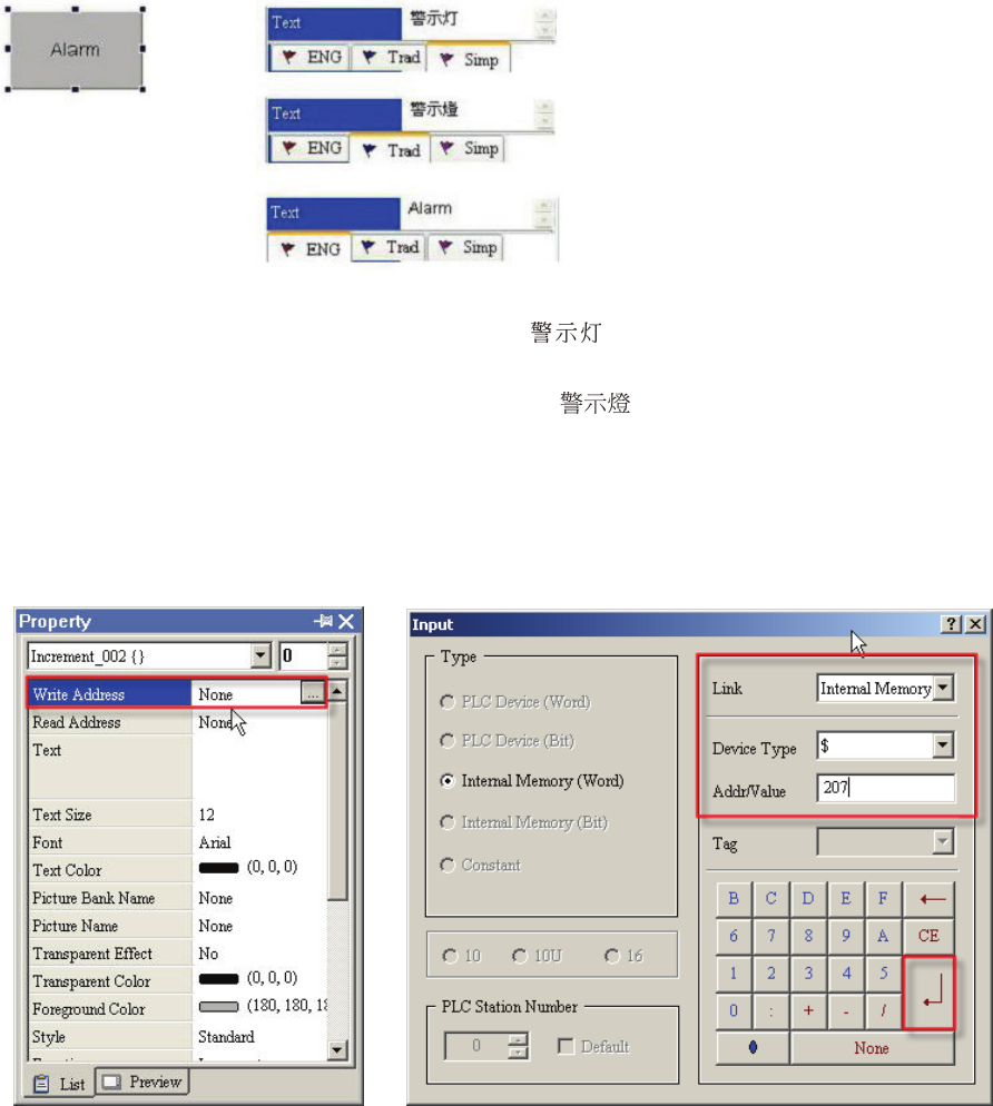 6. In property setting of “Increment” button element, please set the write address as the internal memory
