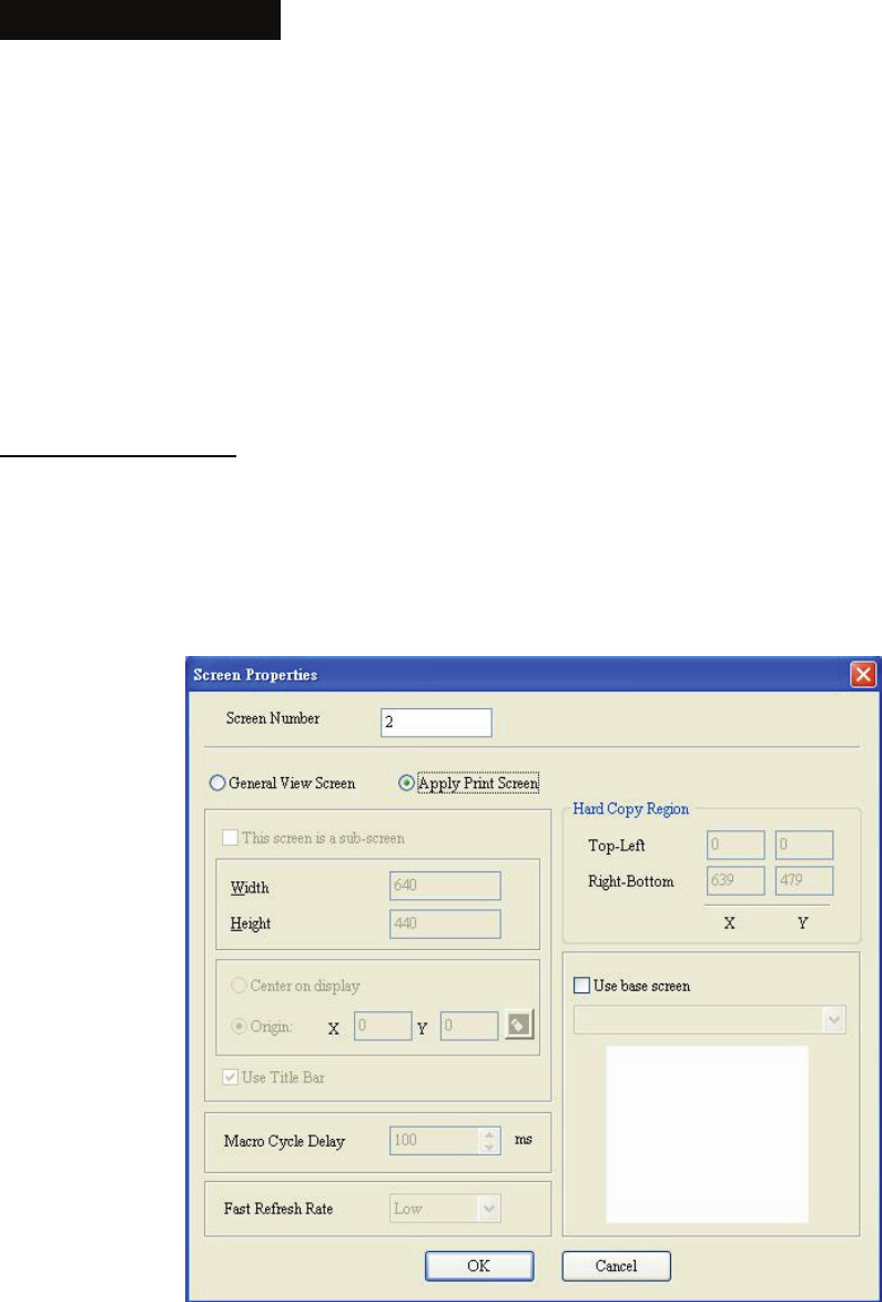 Properties tab (Click Screen > Screen Properties). For the description of Apply Print Screen function,