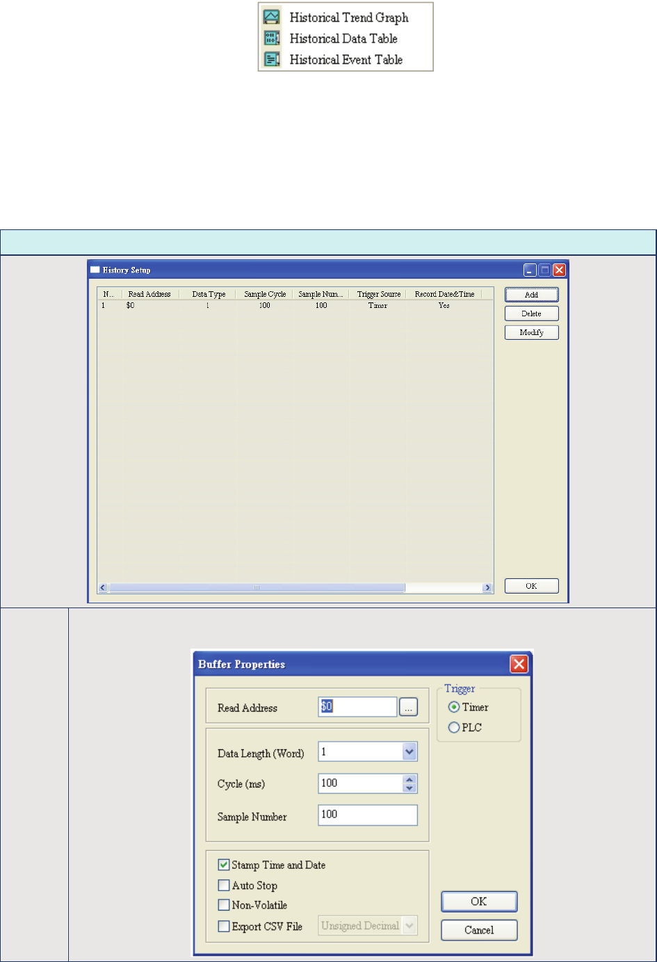 Add Pressing Add button can add a history data. After the Add button is pressed, the following