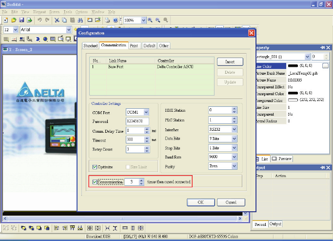 Communication tab in Configuration dialog box (Fig. 5.1.1), once reach the communication cancel