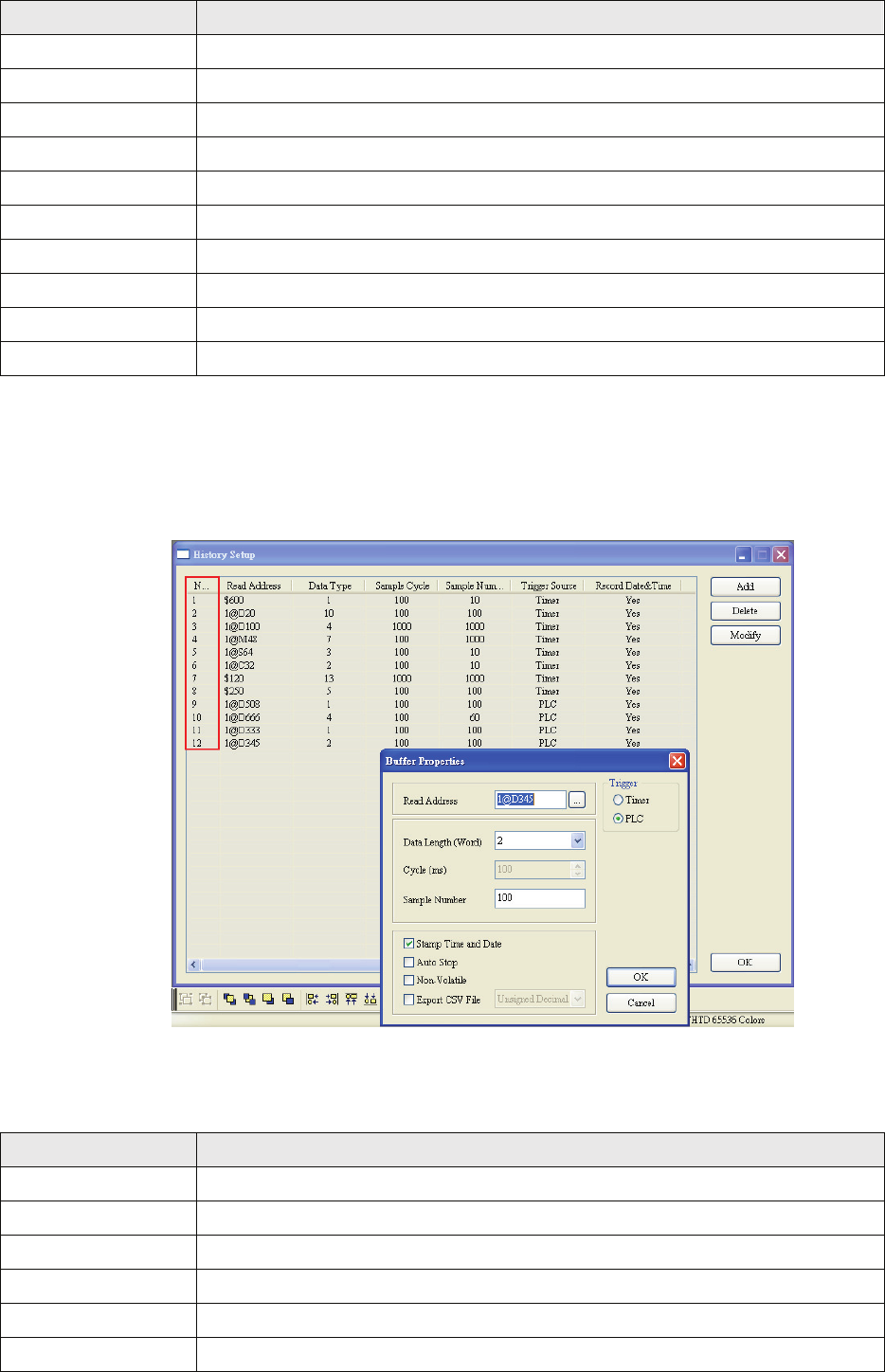 Controls sampling history buffer operation of HMI by the external controller, i.e. PLC. It will sample 1