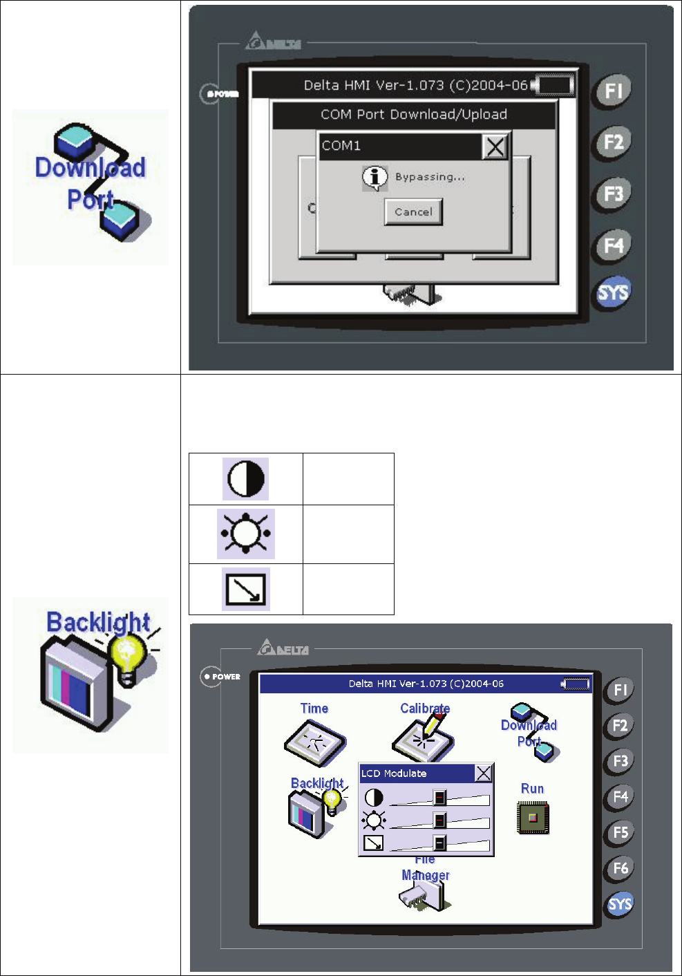 Touching Backlight icon change the screen parameter settings. Please refer to