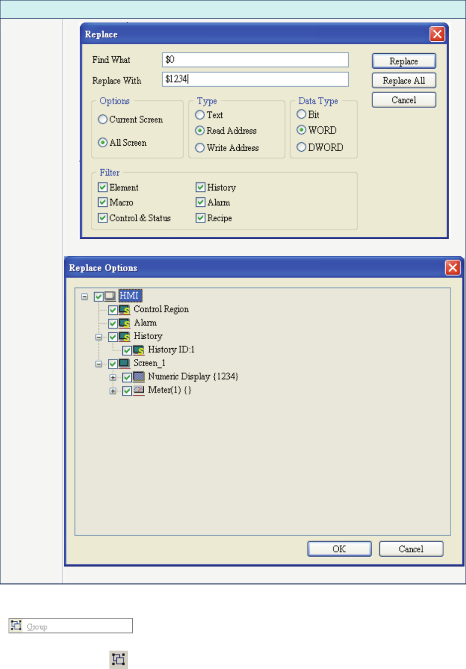 It is used to group elements in ScrEdit. Select this function by choosing Edit > Group from menu bar or