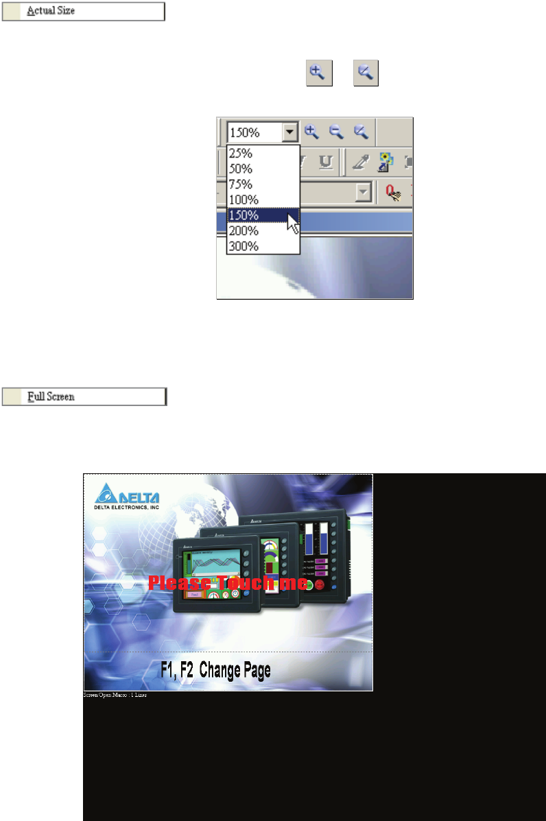 Return to actual size (100%). This size is relative to the screen size of HMI.