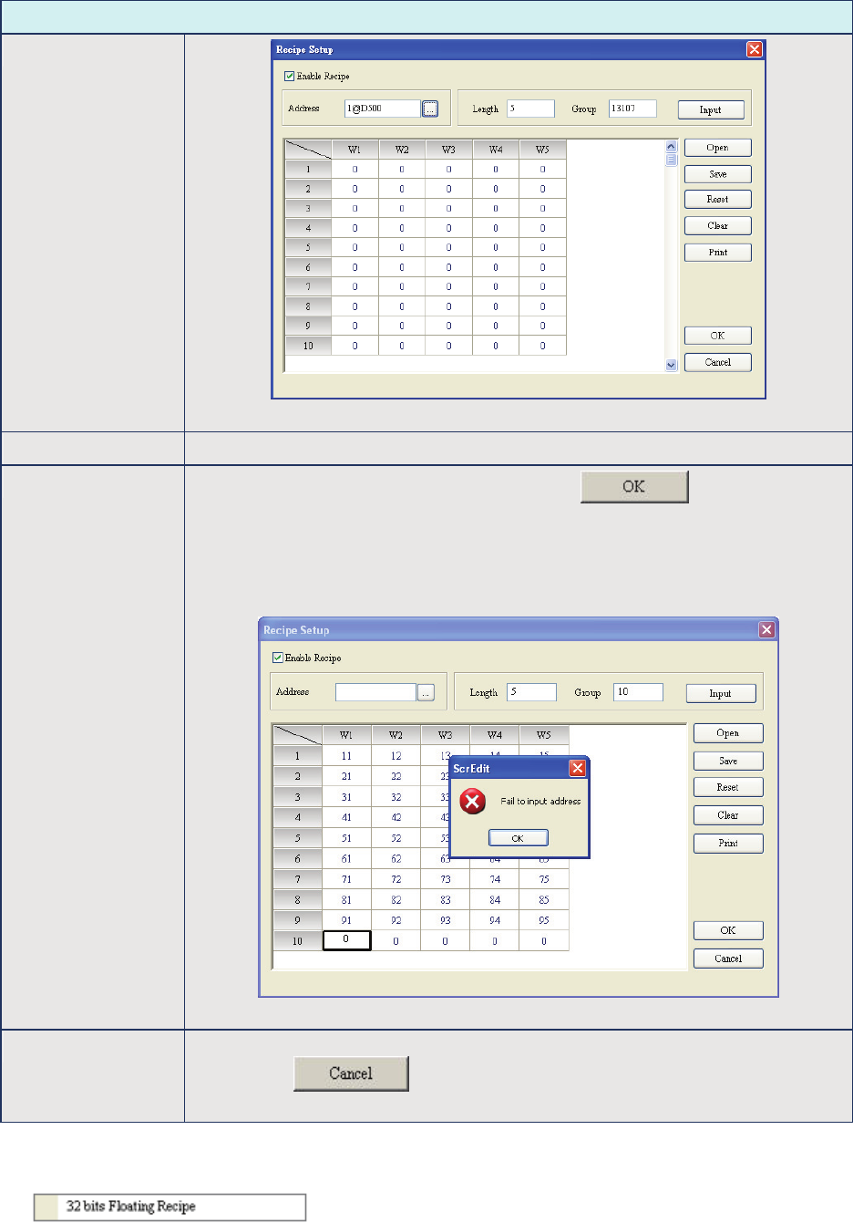 32 bits Floating Recipe function provides the user to save 32 bits data. The data format includes