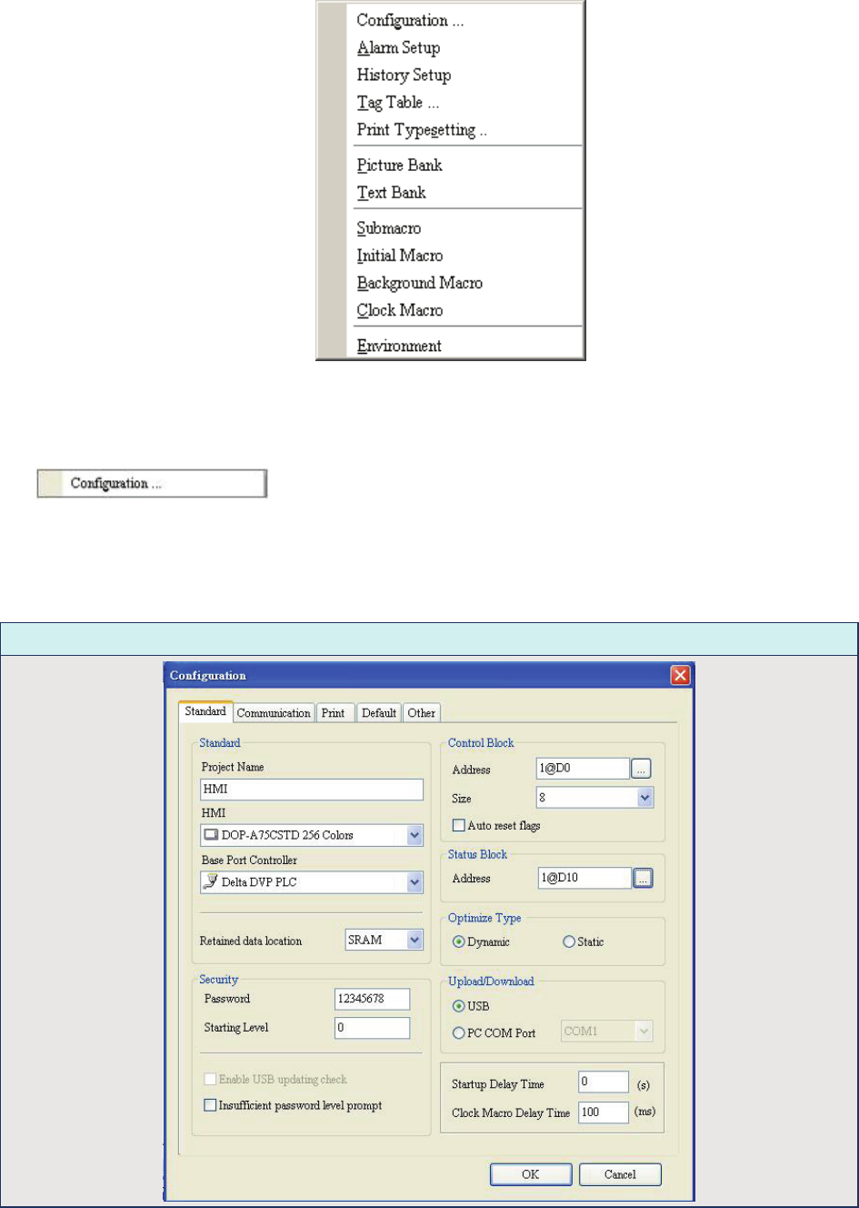 The user can execute this function by clicking Options > Configuration. This dialog box is divided into