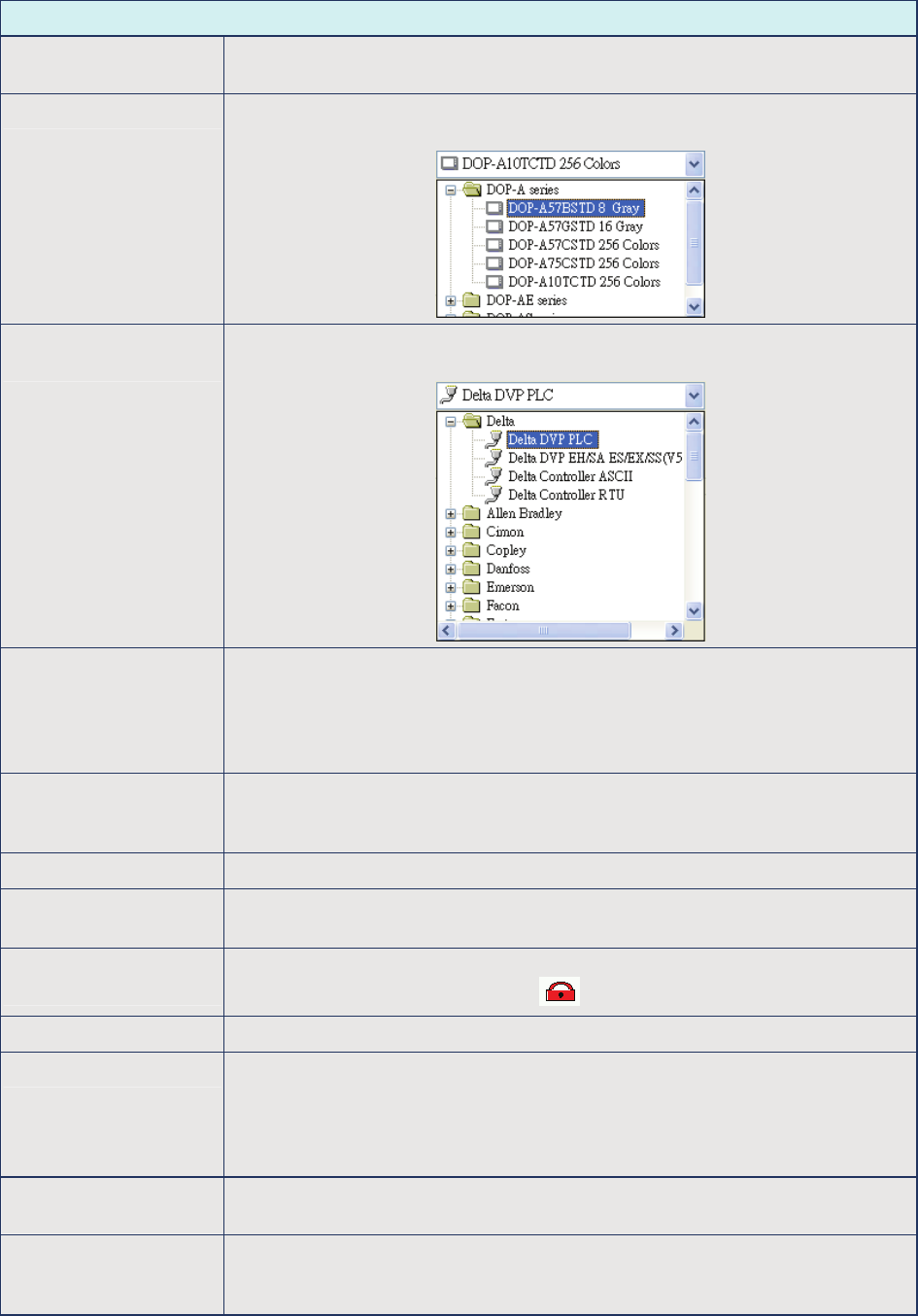 HMI Type (Standard) It is used to select DOP series HMI type for different functions and