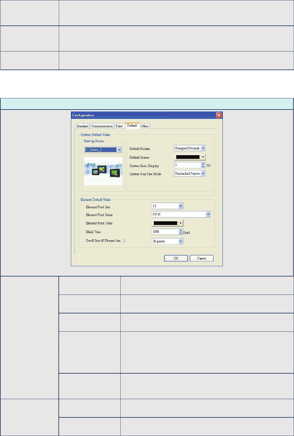 Table 2.9.4 Default Tab