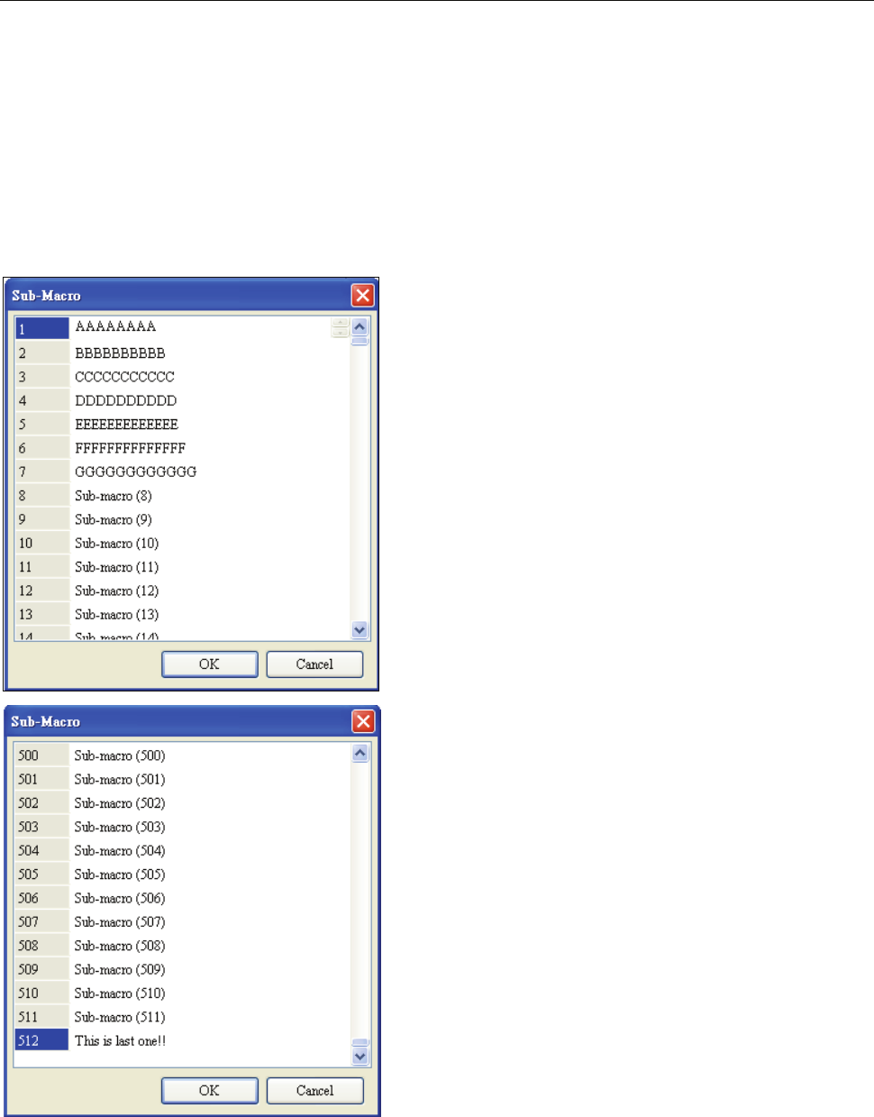 words (max.) for writing comments or strings in a line. The sub-macro number is 512 sub-macros (number is