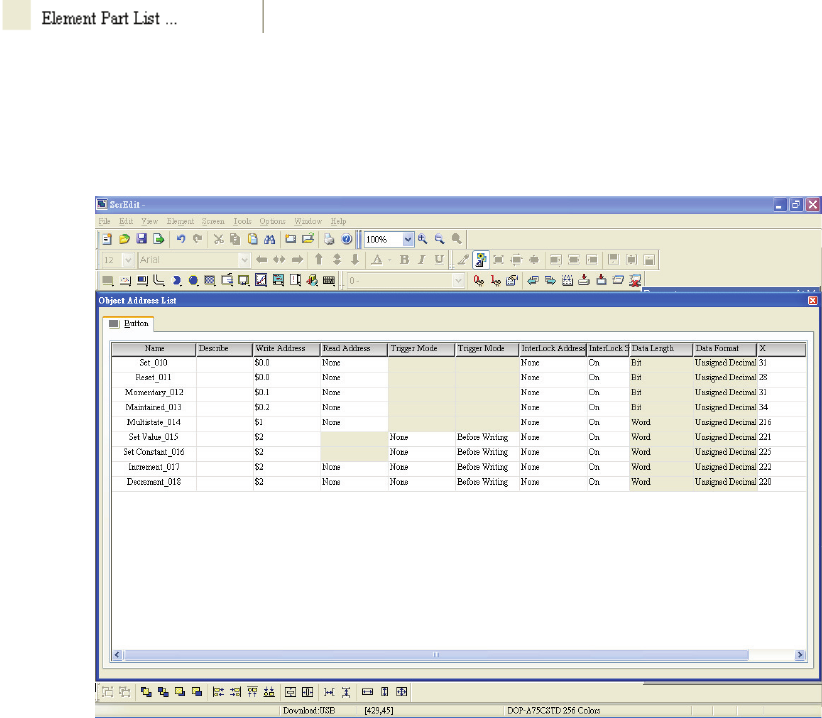 When Element Part List function is enabled, ScrEdit will sort out and classify all the elements on the