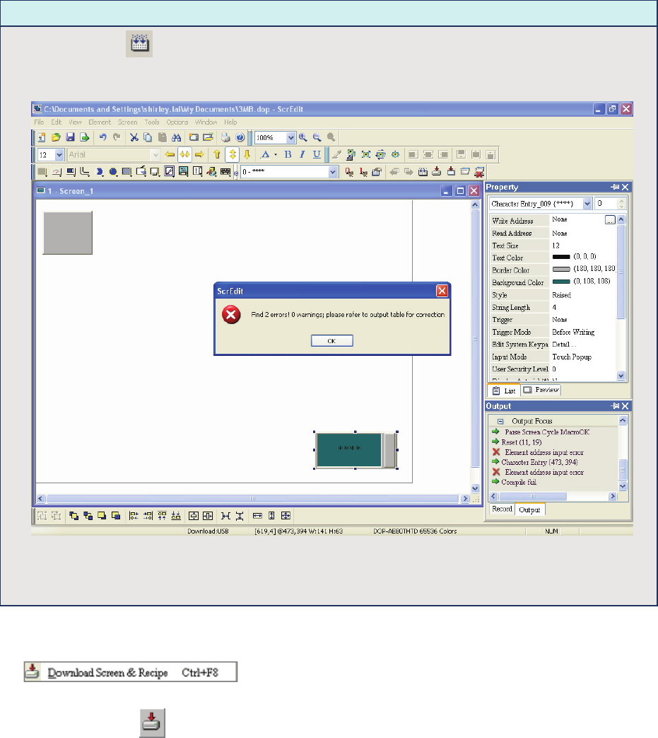 The user can download screen data and recipe to HMI by clicking Tools > Download Screen &