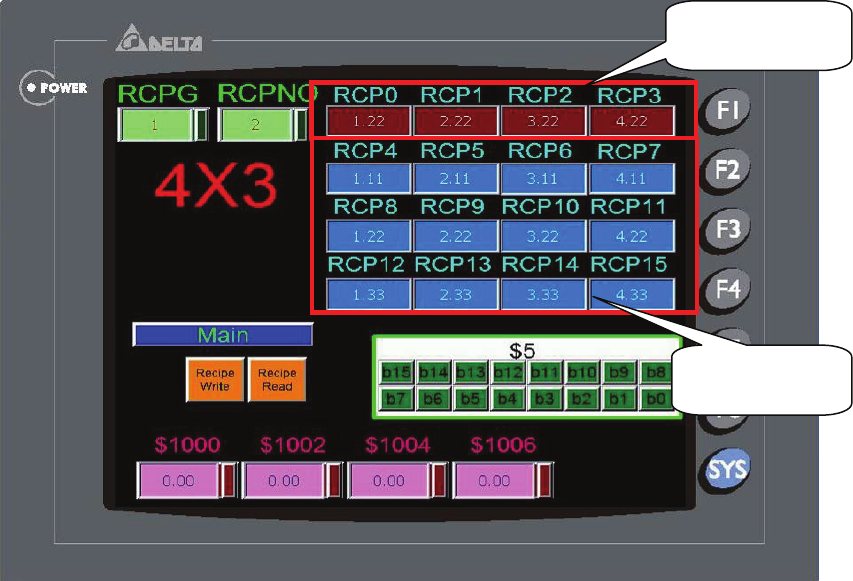 into $1000 ~ $1006. Recipe Read ($5.1) button is used to execute recipe read operation. When this