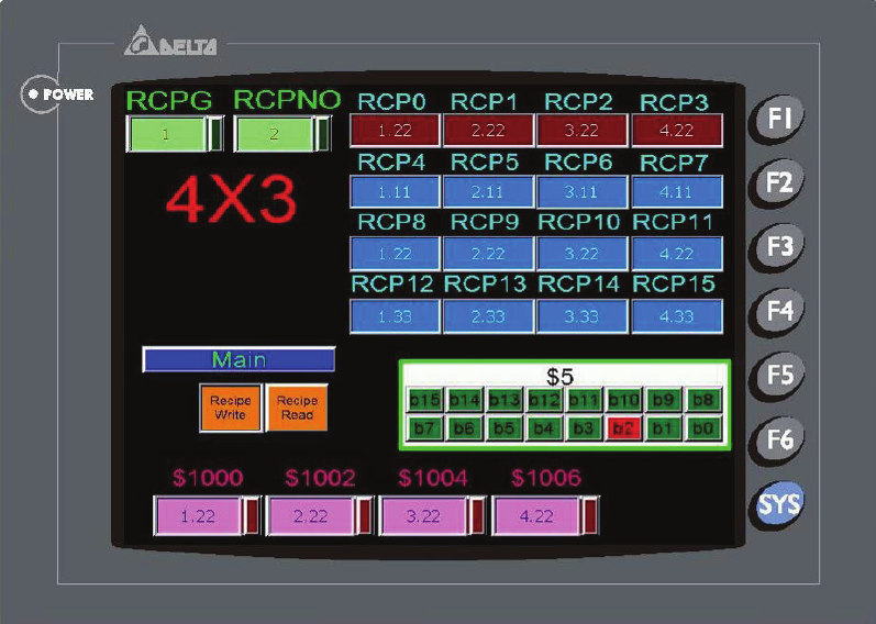 will read recipe data of recipe storage address ($1000 ~ $1006) back to HMI recipe register RCP