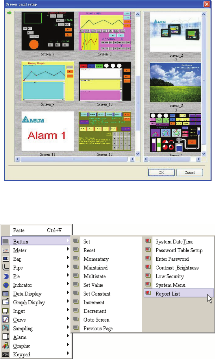 Right clicking the mouse or use a function key to create a “Report List” button on a “General View Screen”.