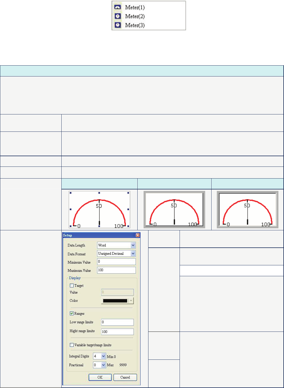 The user can set meter appearance in the property table, such as the style, the color (including border color,