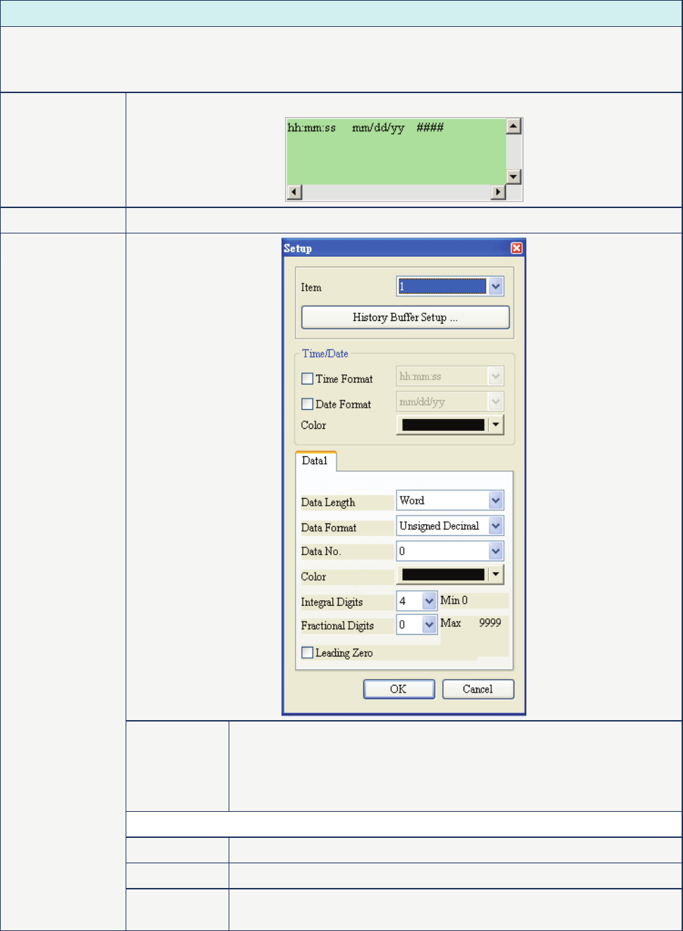 length is within 1 ~ 8words. The Data No. in History Data Detail dialog will also correspond to the selected
