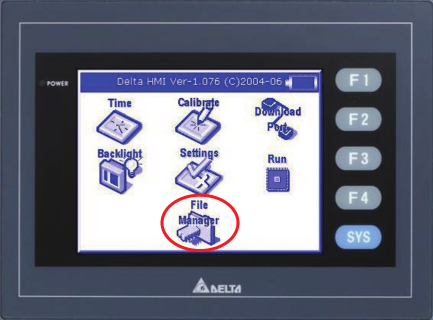 Manager” option and enter into “File Manager” menu screen. When using a DOP AS series HMI, your “File